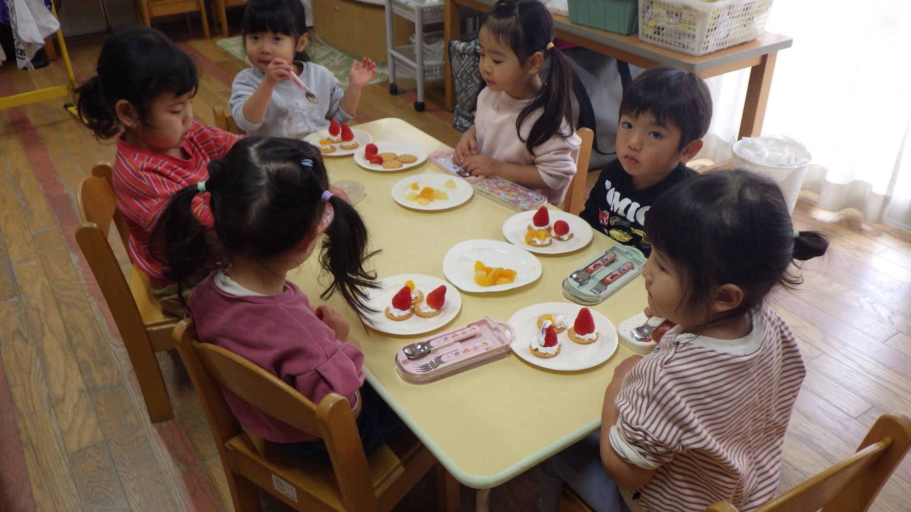 今日は待ちに待ったクッキング!!リッツの上に果物や生クリームを自分でデコレーションし、お皿に盛り付けして完成🎵 できあ […]