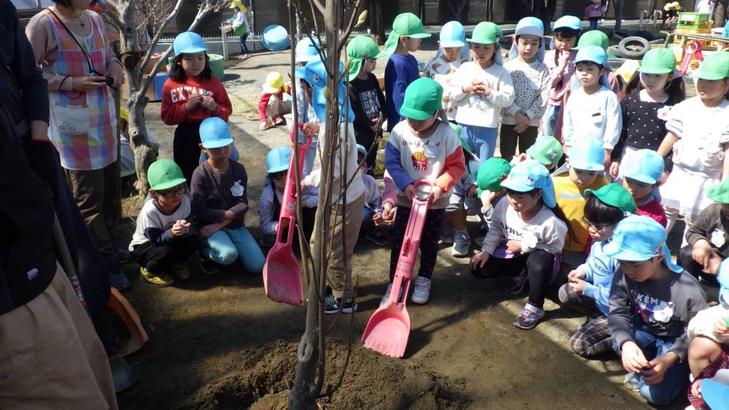 今日は、みんなで話し合って決めた卒園記念の木「モクレン(赤紫)」を植えました‼️