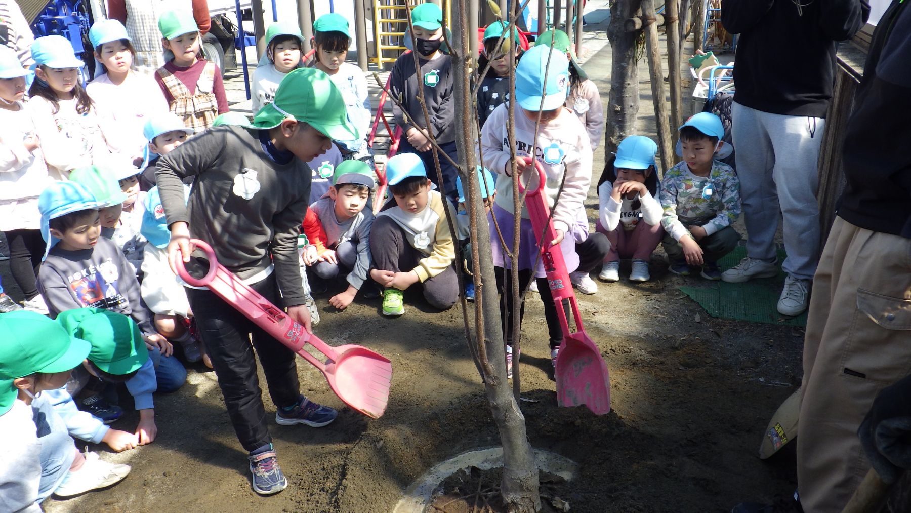 今日は、みんなで話し合って決めた卒園記念の木「モクレン(赤紫)」を植えました‼️