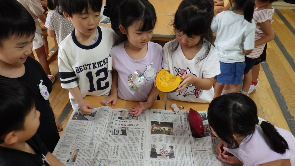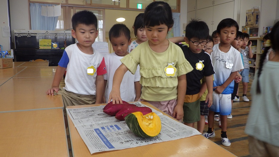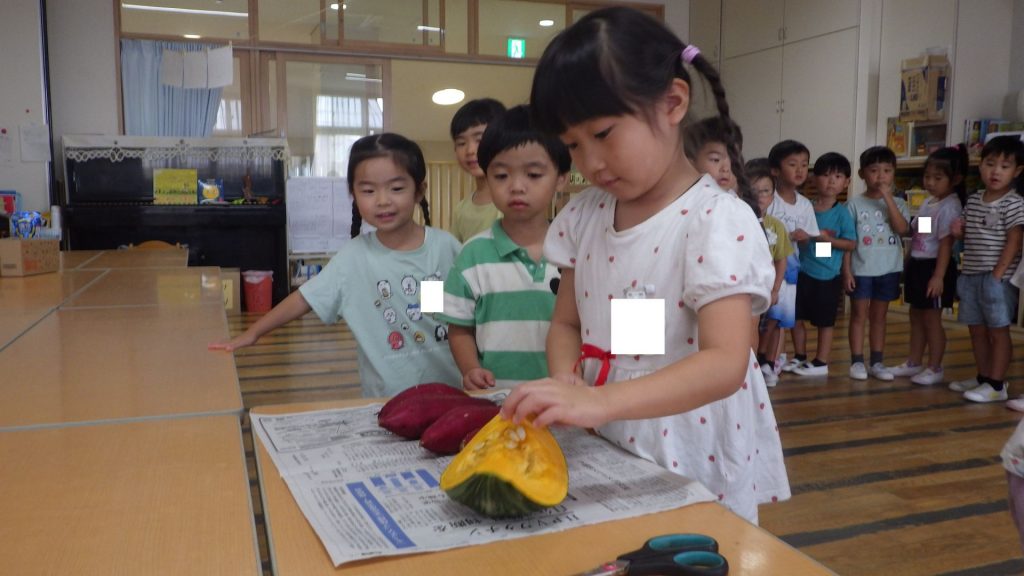 実際にかぼちゃとさつまいもに触れてみると・・・