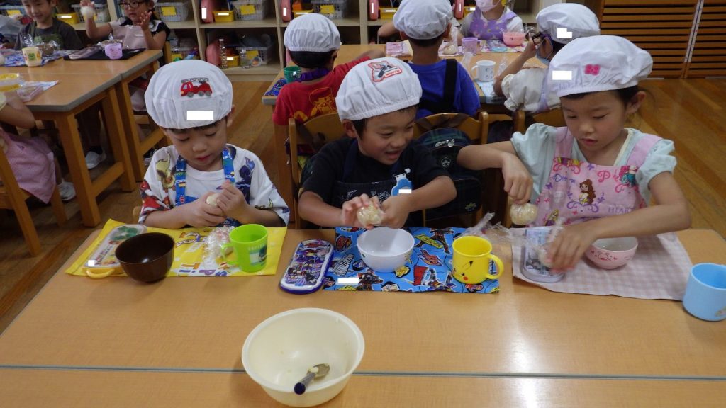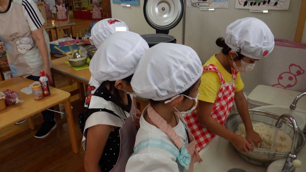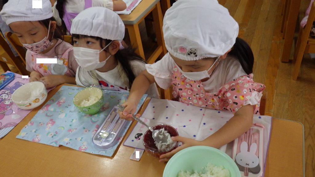 「さんかくむずかしい~」「上手にできた~」と楽しみながら握っていました✨