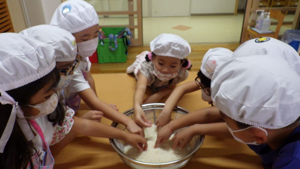 お米はどんな感じ?「さらさらしてる」 「順番に研ぐよ」