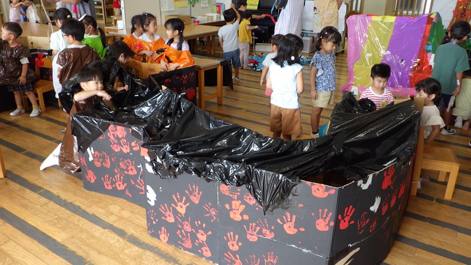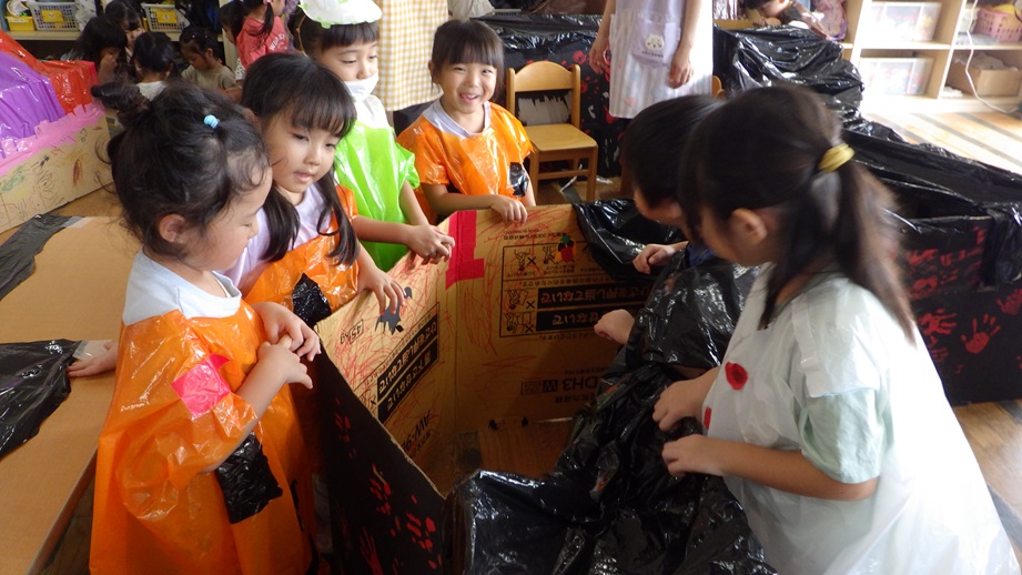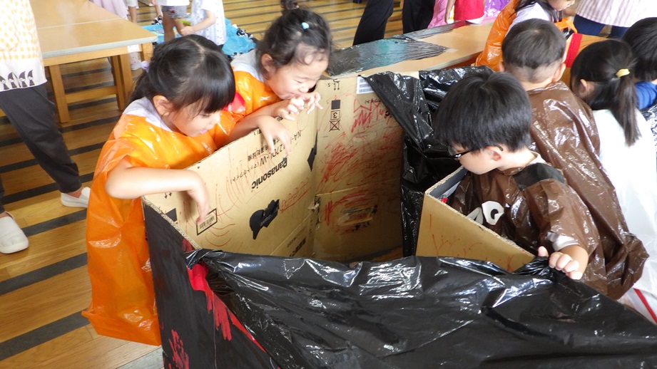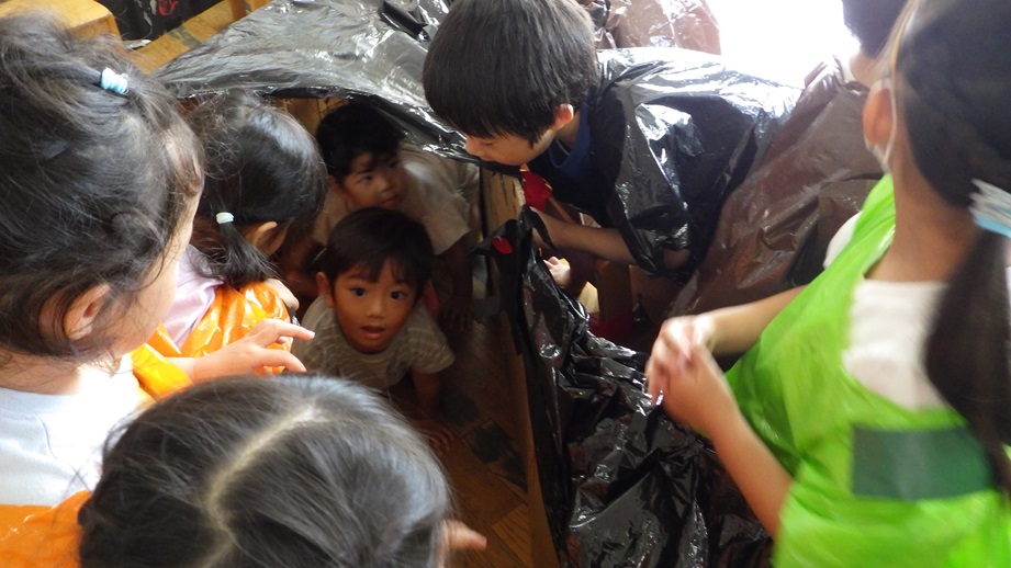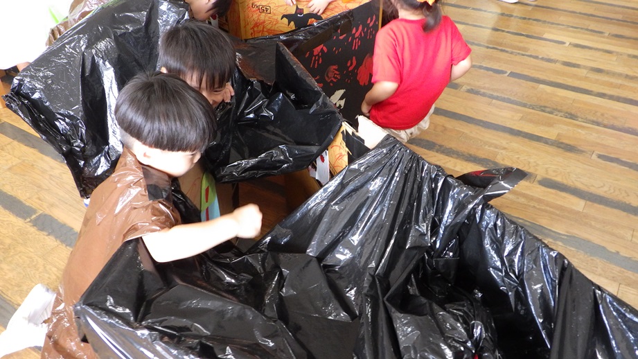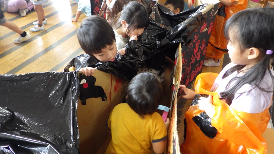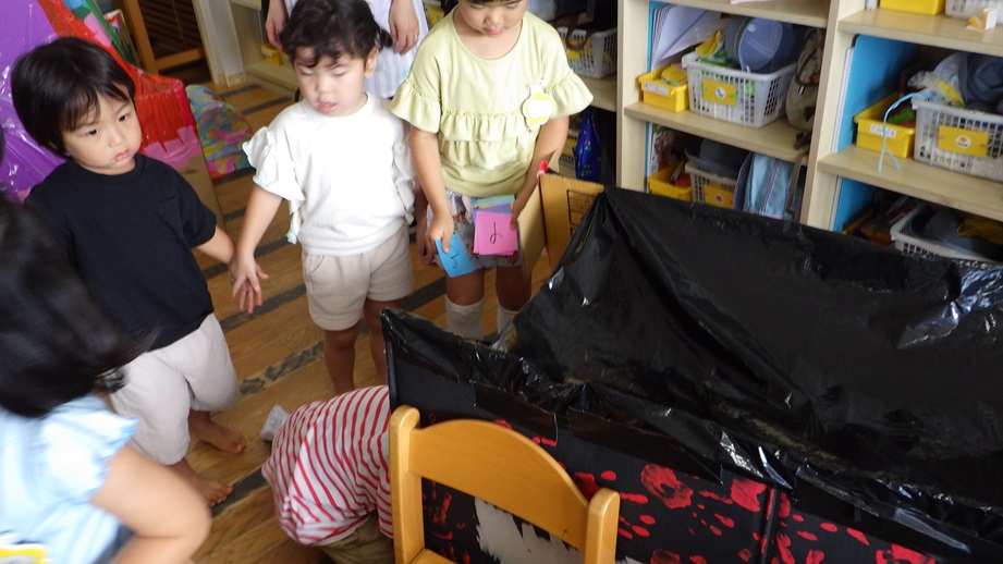 おばけ迷路では迷路を案内してあげたり、おばけになって驚かしたり、ゴールした子にご褒美を渡したり…