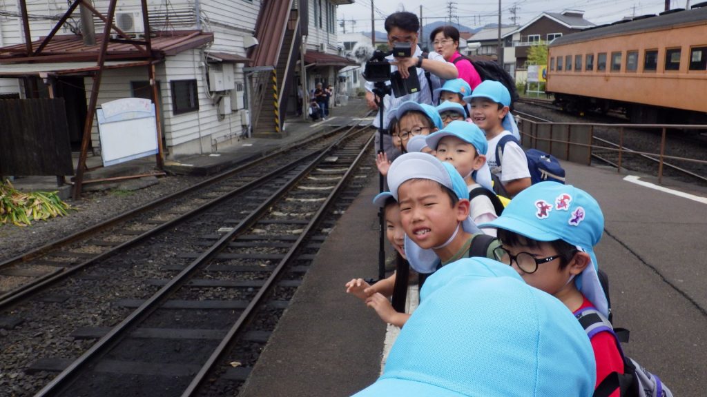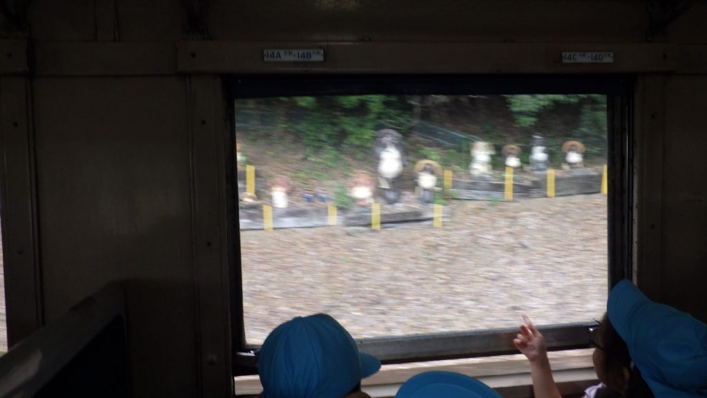 途中の「神尾駅」ではタヌキを見つけて「いたー!」と喜んだり