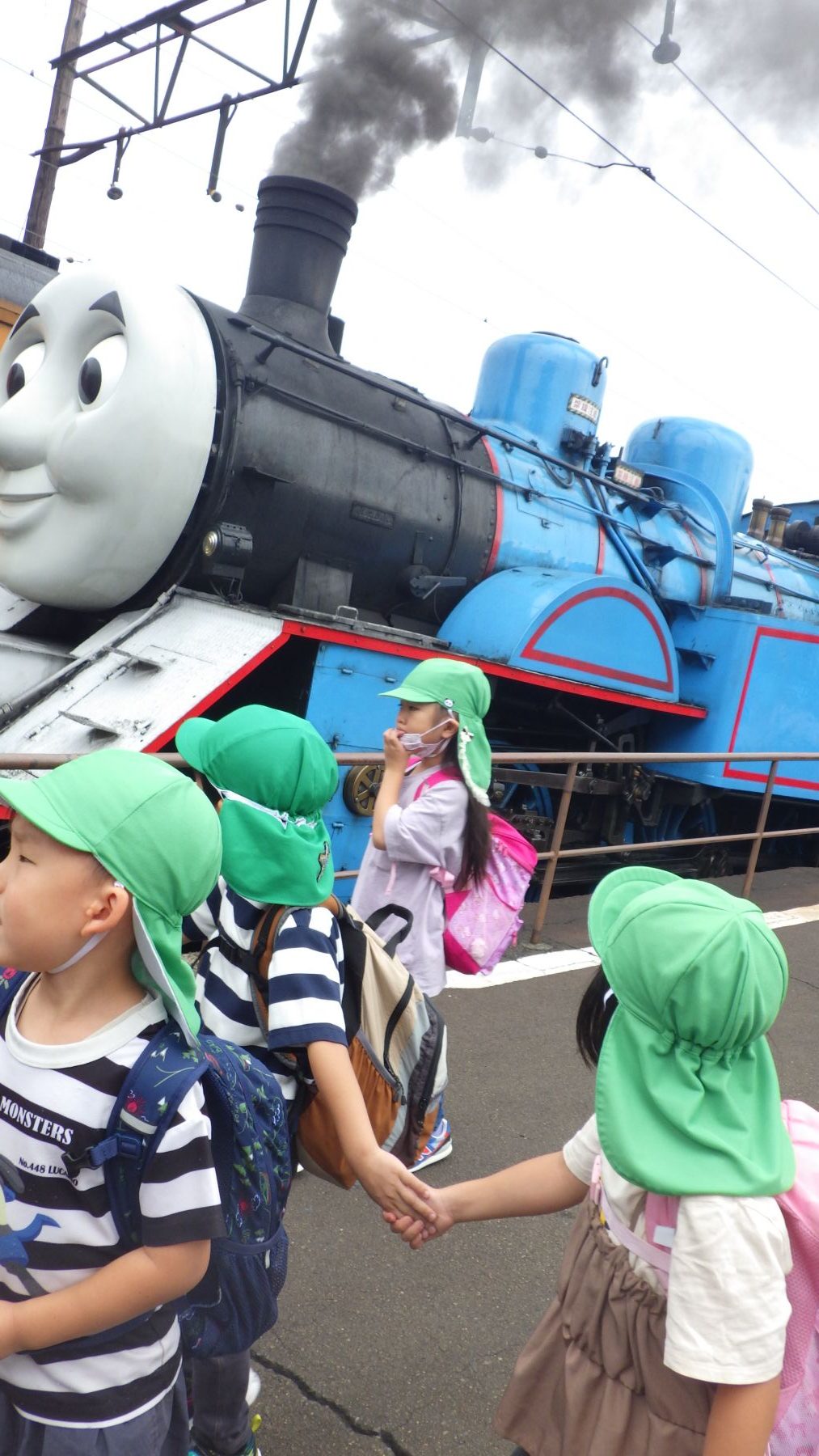 停車してるトーマスを見て煙の違いに気づき「黒い!」