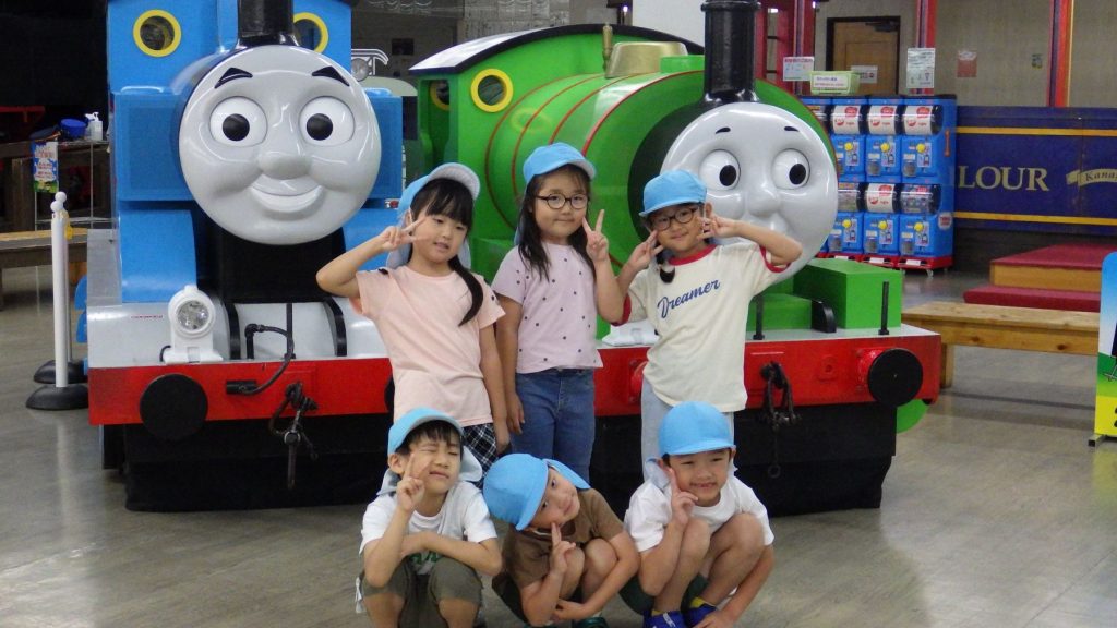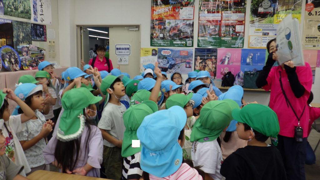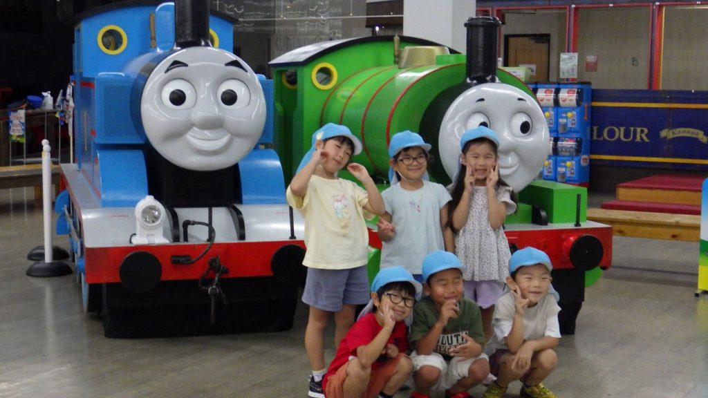 園に戻ってからもトーマスの絵本を見て振り返っている子供たち