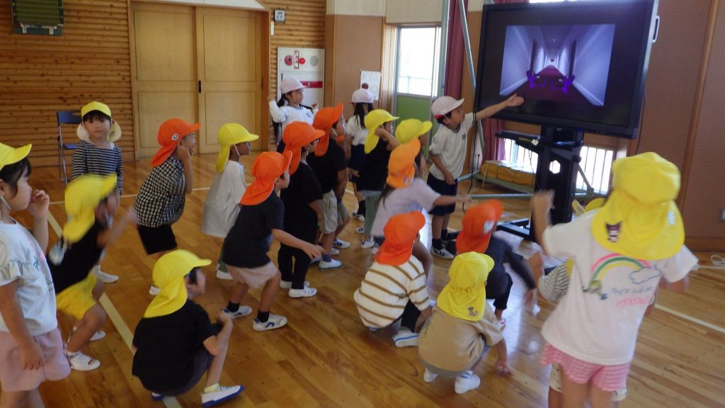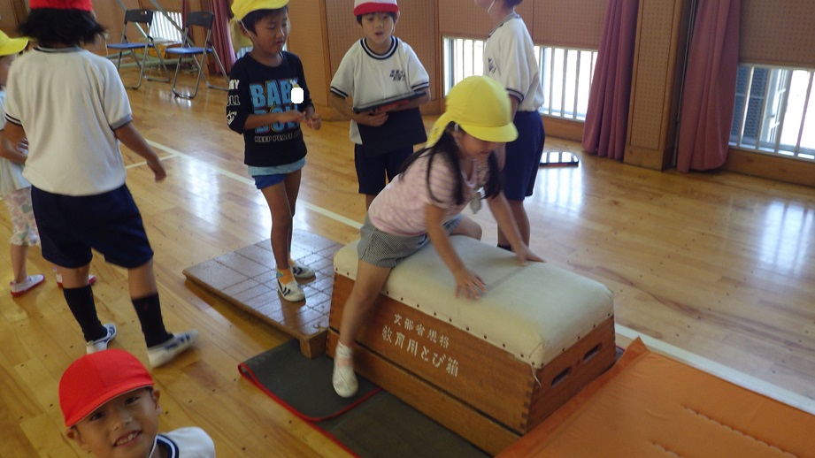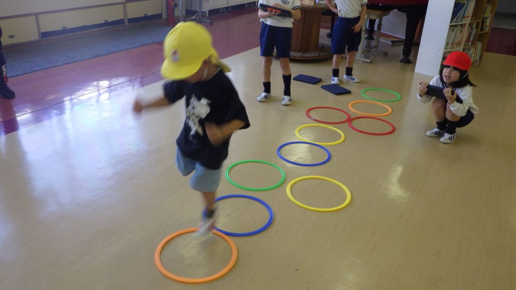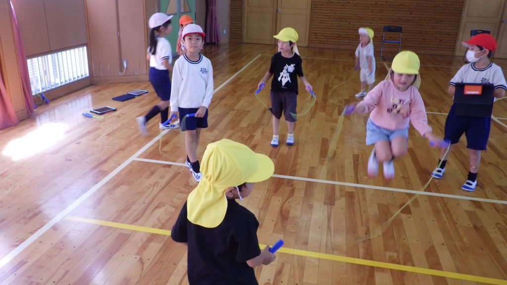 なわとび、跳び箱、マット、フラフープ、けんけんぱ、箱積み、タブレットでお絵描き、ゲーム…