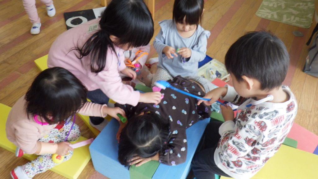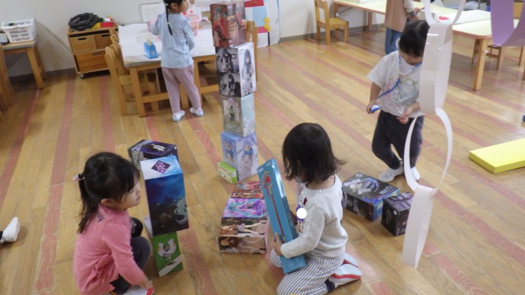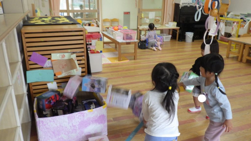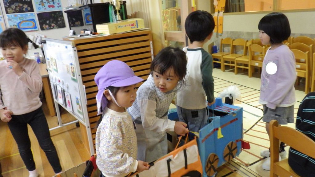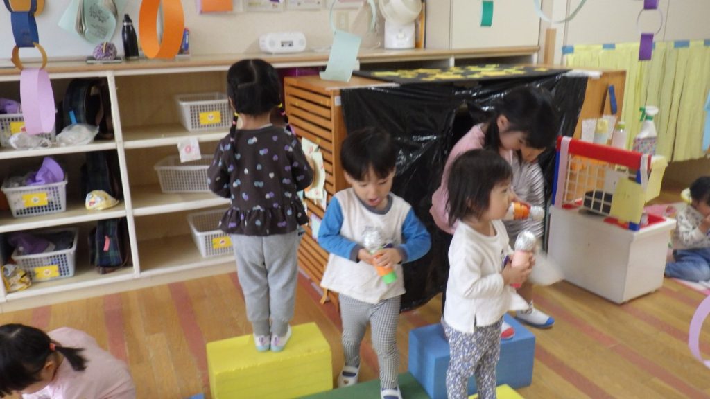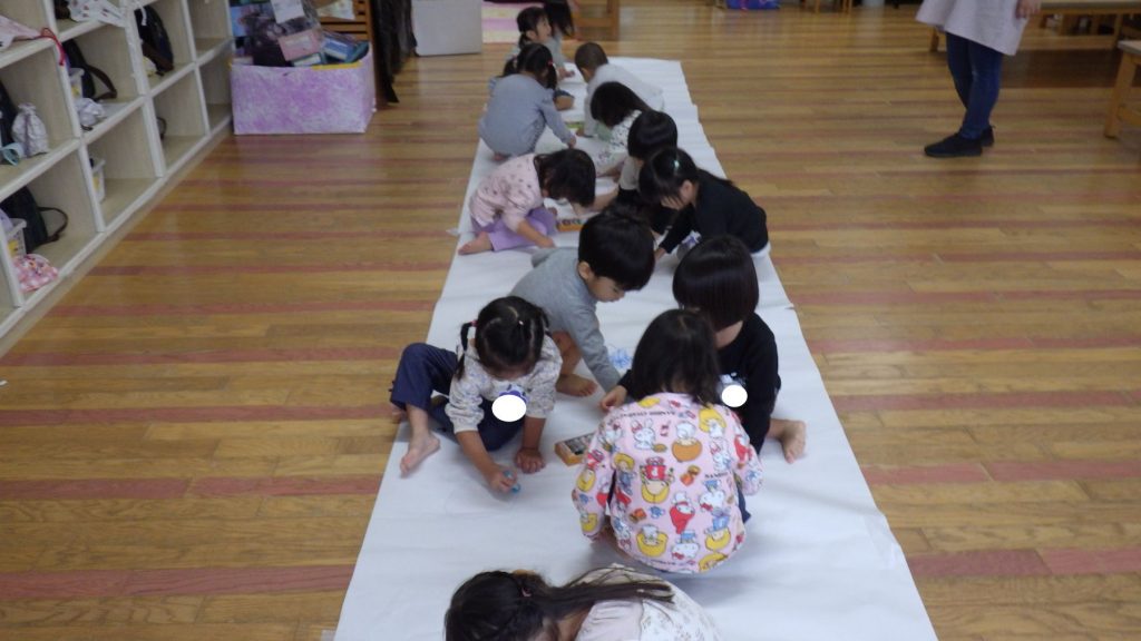 「わー!ピンク色になった。」、「私もやりたい!!」と遊びの中で季節を楽しんでいます。みんなで遊ぶことや1人でもじっくり遊ぶ事がだいすきな子ども達。幼稚園で色々なことを経験して楽しく毎日を過ごしています。