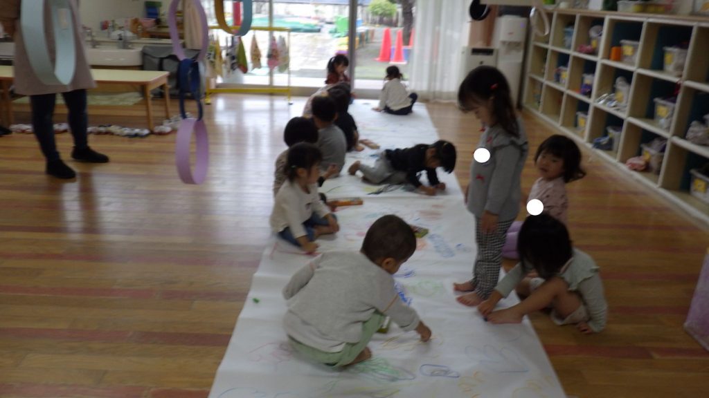 毎日元気いっぱいのあさがおぐみの子ども達、お絵描きしたり、ごっこ遊びをしたり、室内でも楽しく遊んでいる様子が見られます。