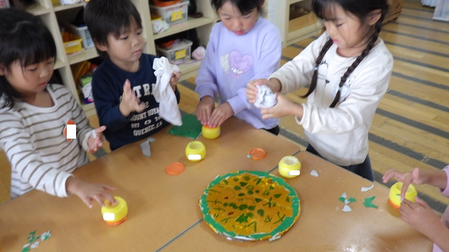 前日に自分達で千歳飴の袋を手作りして、当日はみんなでちらし寿司作り😆🎶