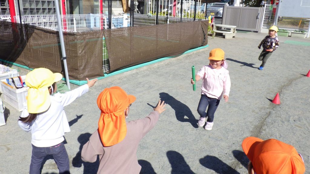 ごはんを炊いている間、リレーをしたり戸外で遊んだりして過ごしましたが