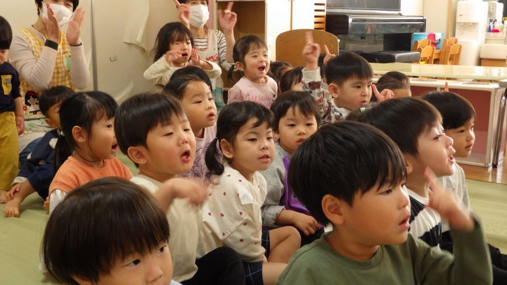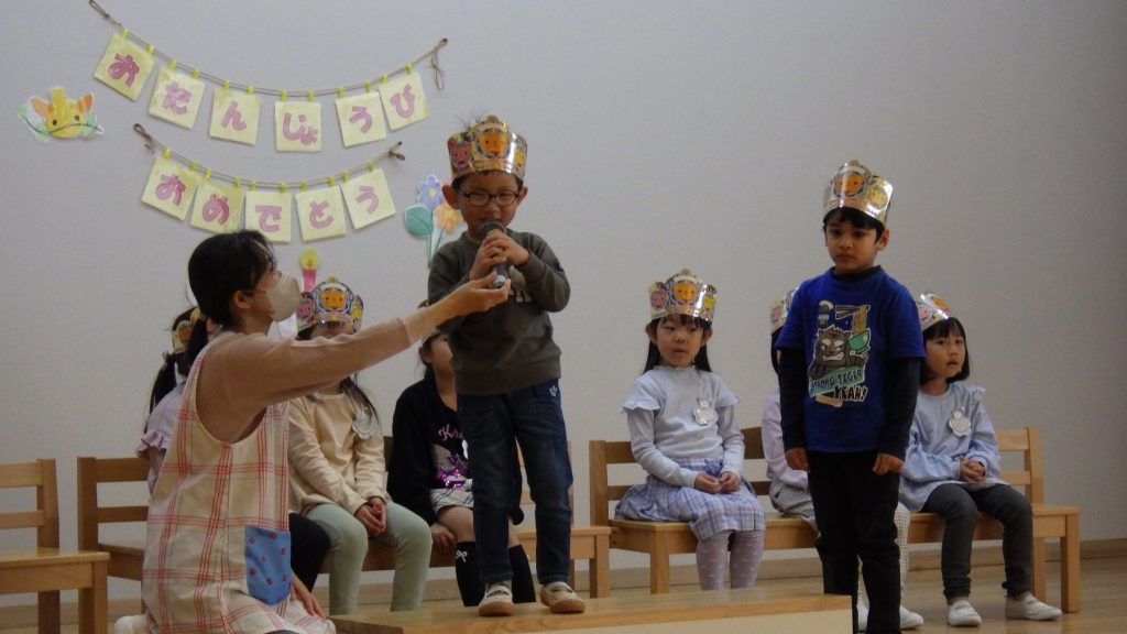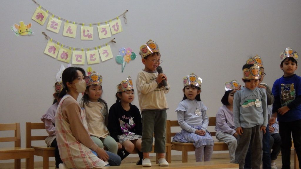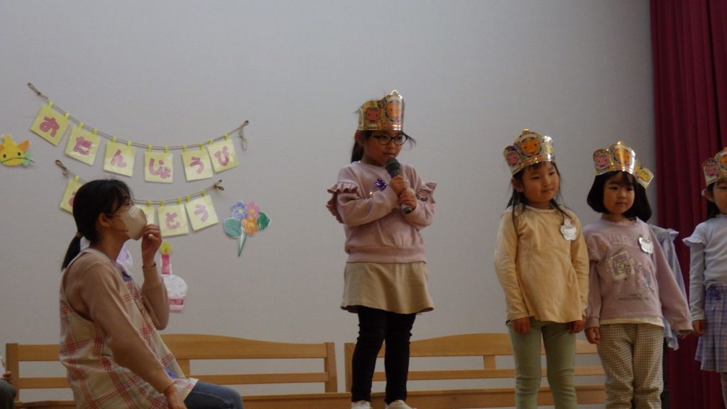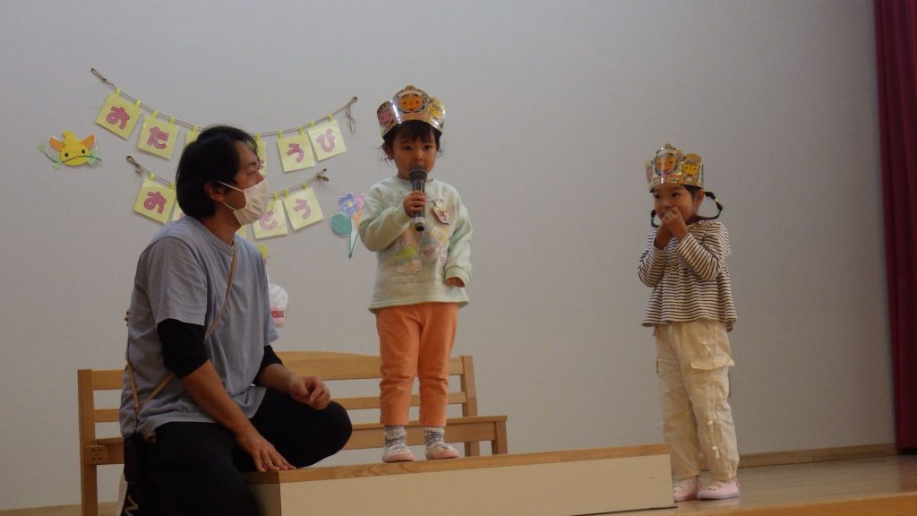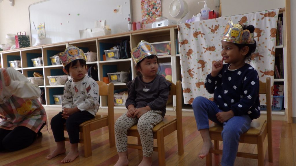 今月は3名のお友達でした。名前を呼ばれると、みんなの前で「はーい!」と元気にお返事が出来ました😊
