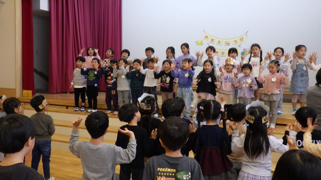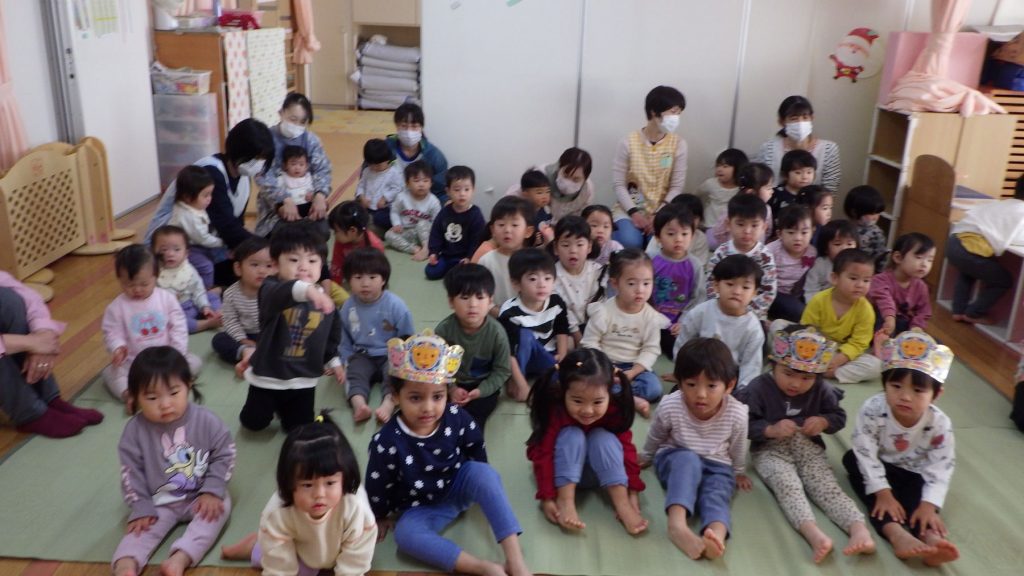 0,1,2,満3歳児クラスは、すずらん組に集まってお祝いしました。