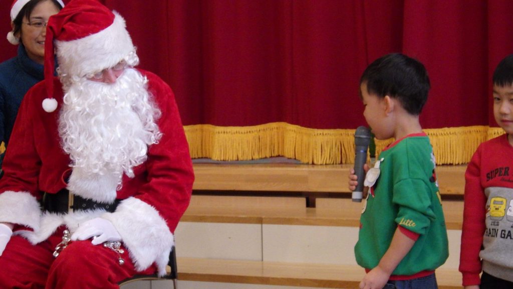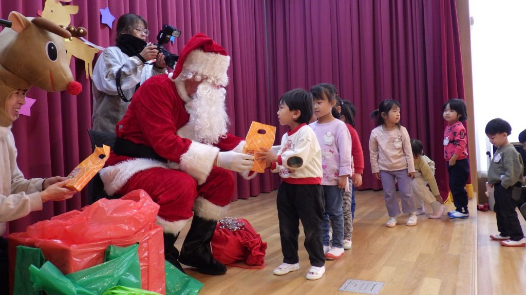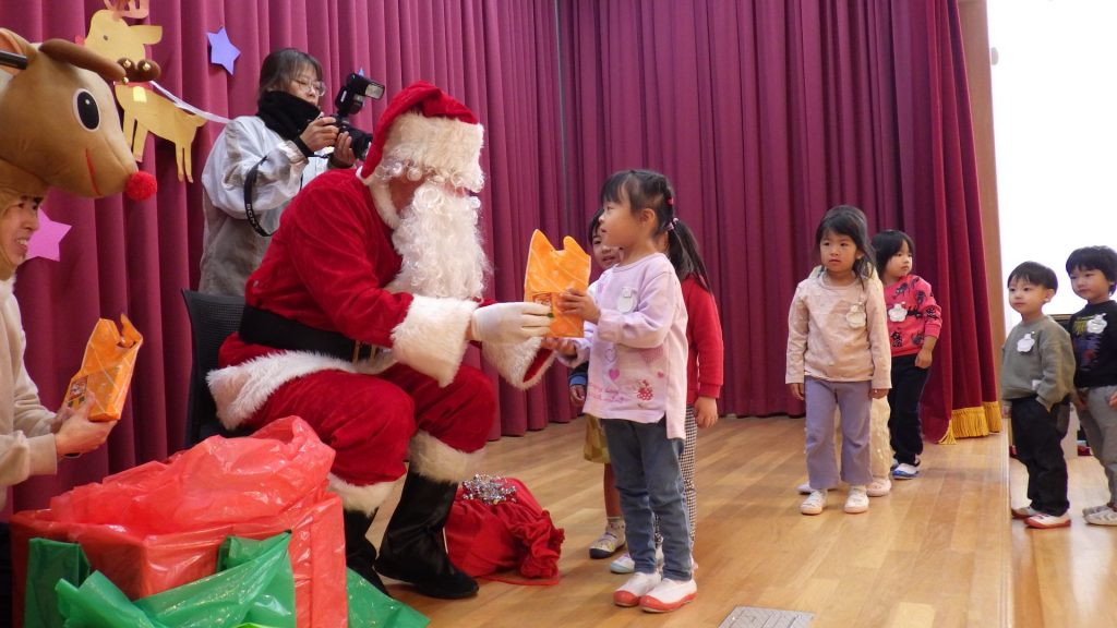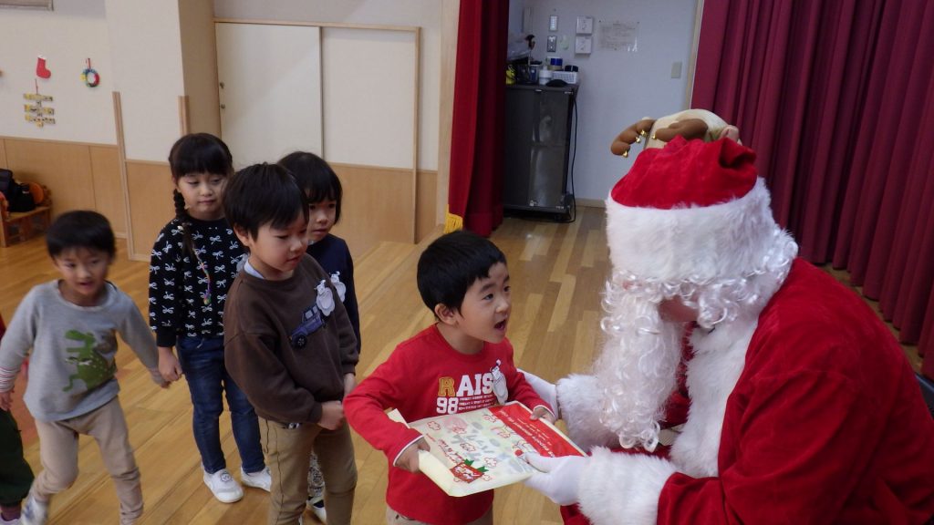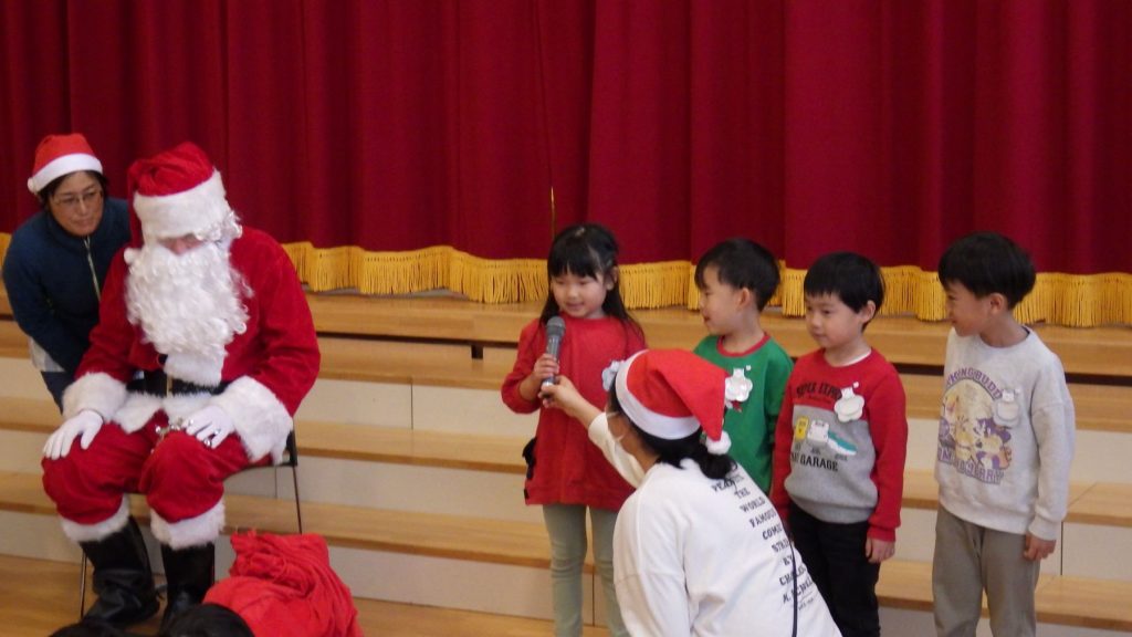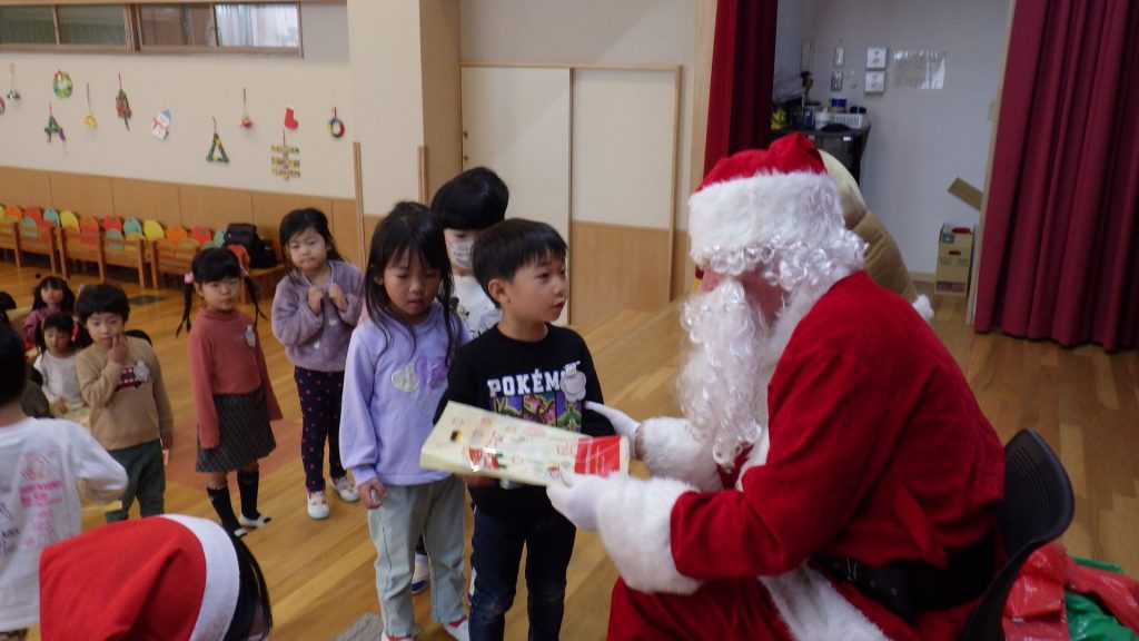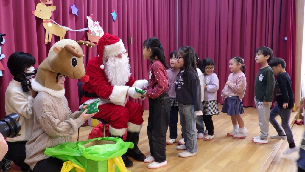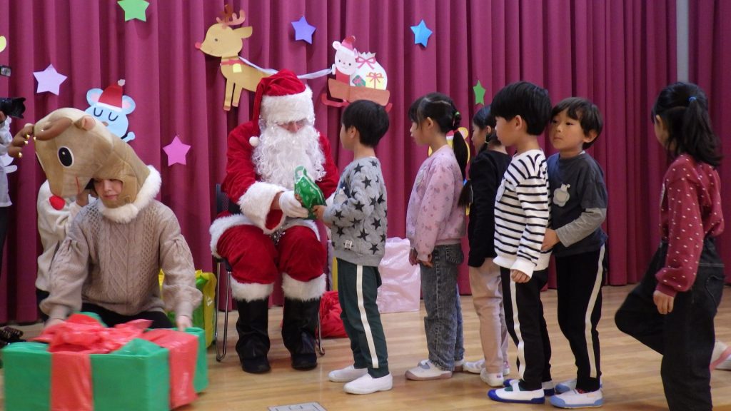 ひとりひとりサンタさんからプレゼントをもらい、緊張しながらも「Thank you!」と英語で伝えることができました🙌