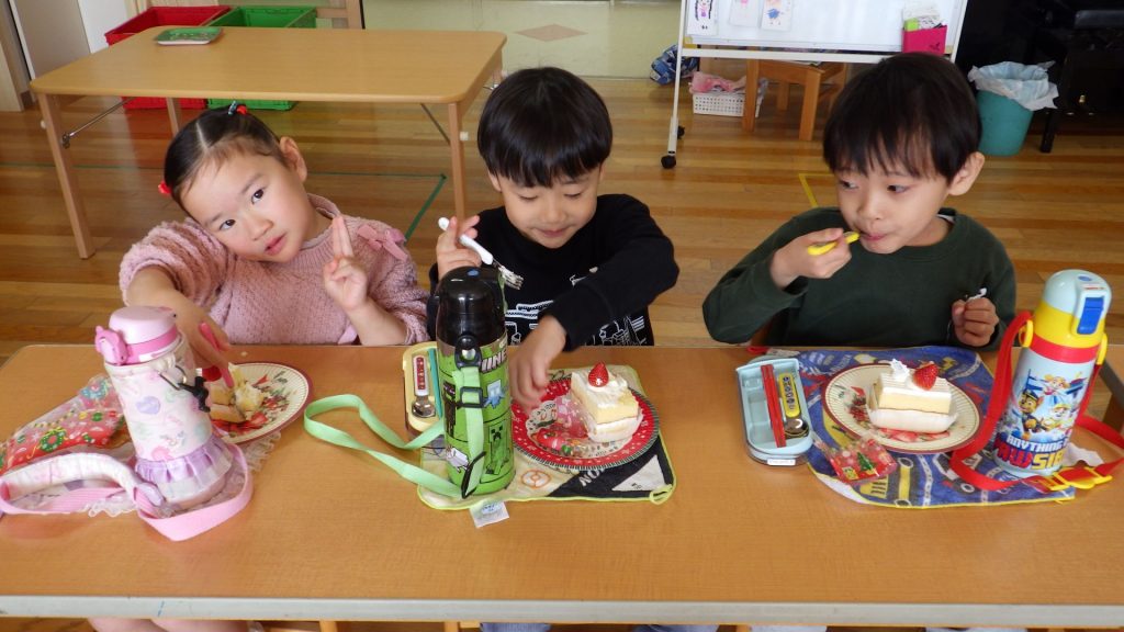 でも、おたのしみはまだまだ!!お部屋でクッキーやケーキをみんなでたべました🍰