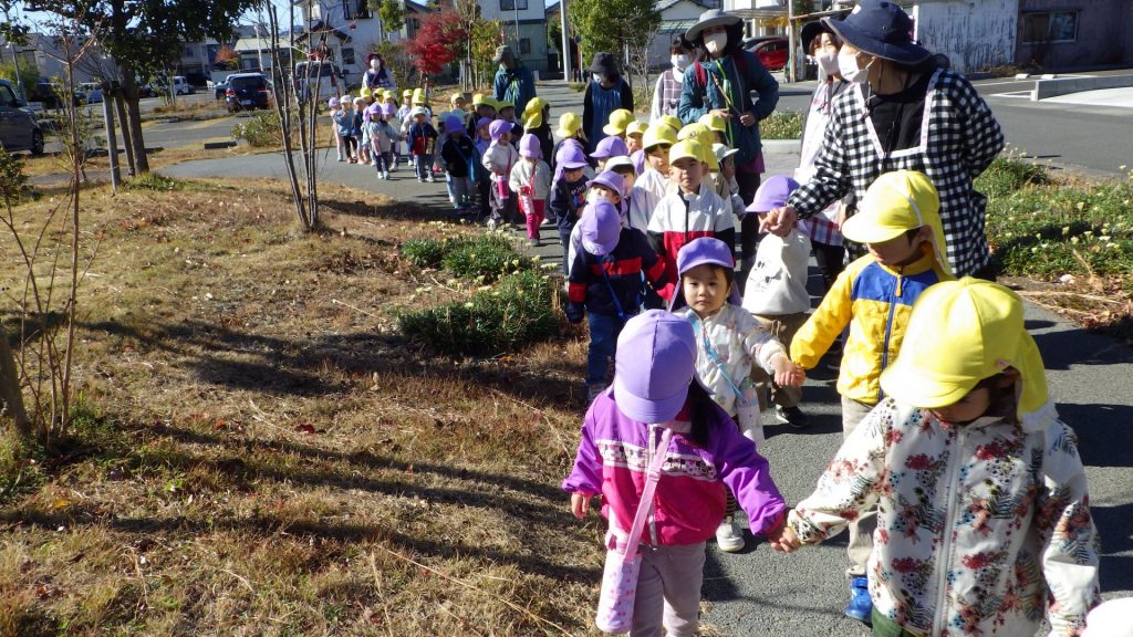 そんな中で、すずらん組、あさがお組、つぼみ組の小さなお友達とも一緒にお散歩に出掛けました!!