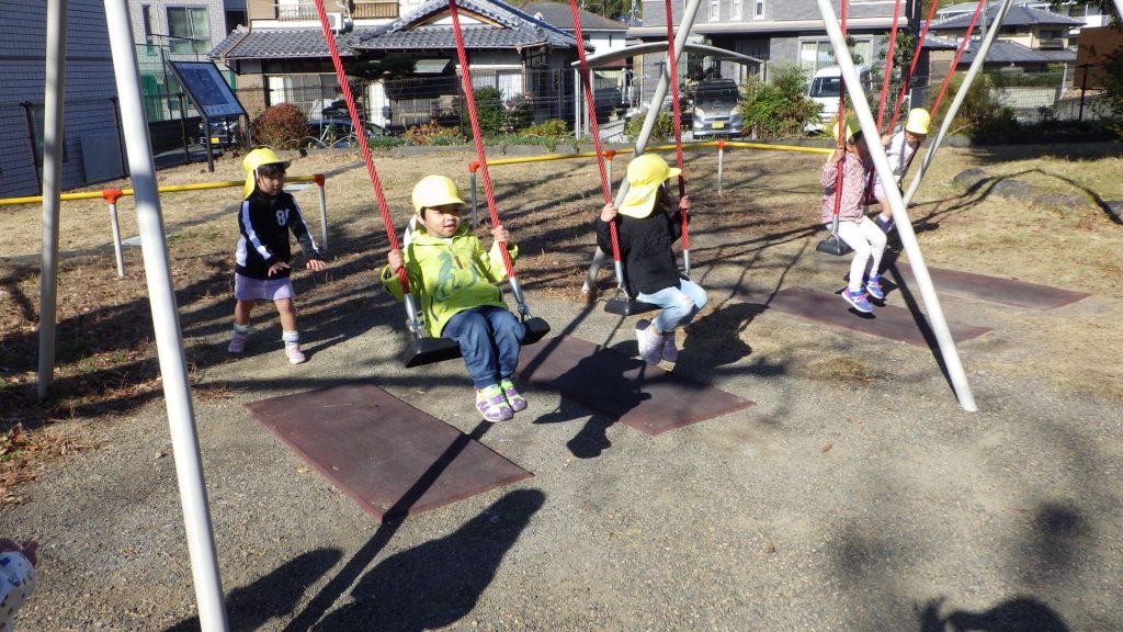 公園に着くといつもとは違った遊具に大興奮の子どもたち!