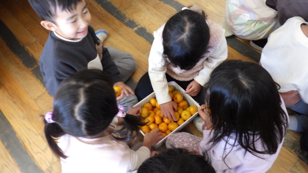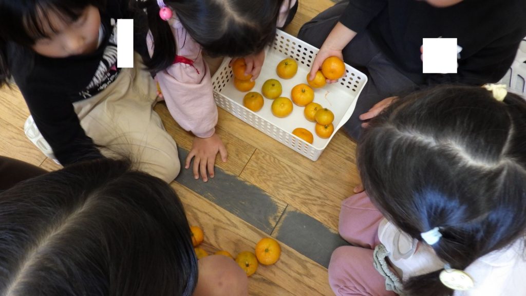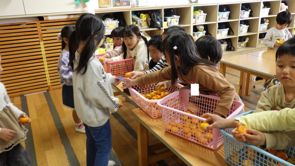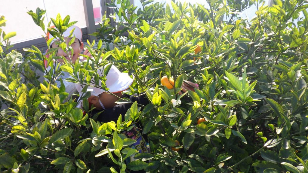 10月に予定していたみかん狩りは残念ながらできませんでしたが、こうして園でみかん狩りの体験ができ、嬉しそうな子どもたちでした💕