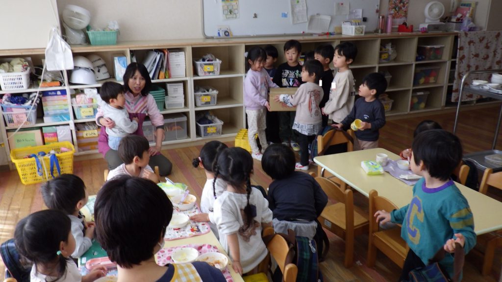 収穫したみかんは園で採れたものだからということで・・・みんなで話し合い全クラスに分け合うことが決定!