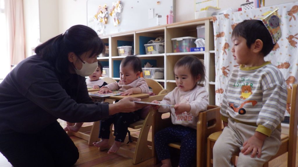 「おいしそうなバースデーケーキは誰のケーキかな?」「プレゼントは何をもらったのかな?」とみんなが考えられるような仕掛けのあるお話を楽しみました😉