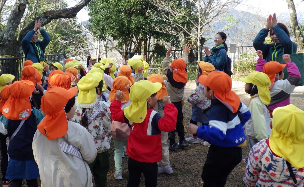 「歩こう~、歩こう~、私は元気~!!」「いっしょに頑張ろう!」