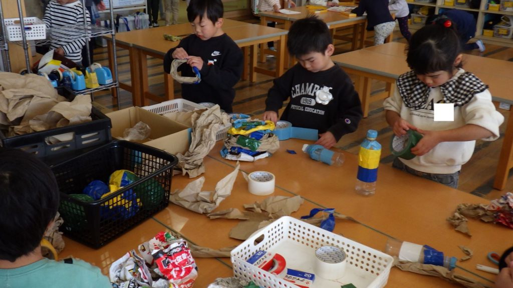 自分達で考えた必要なものを協力して作り進めたり、