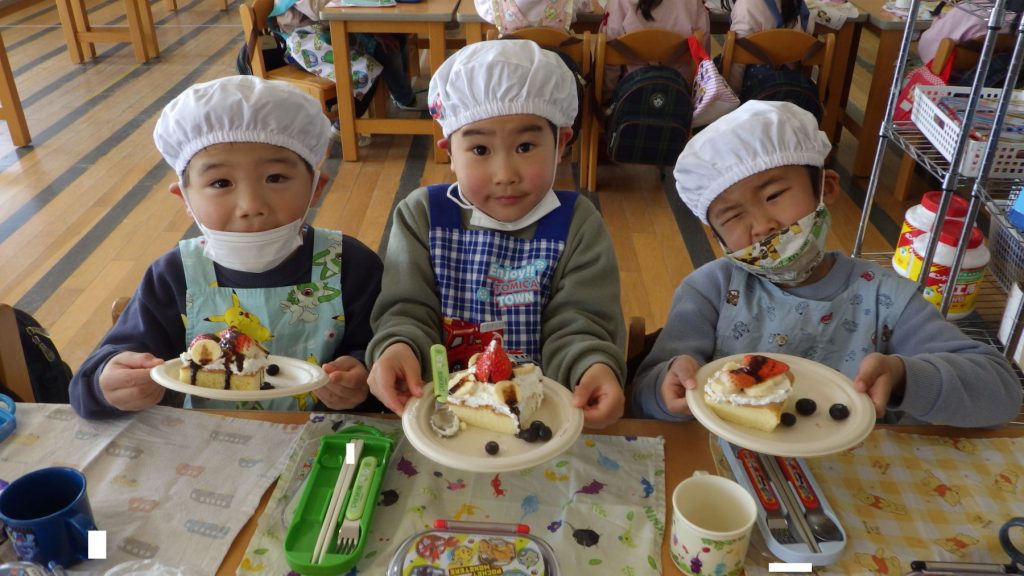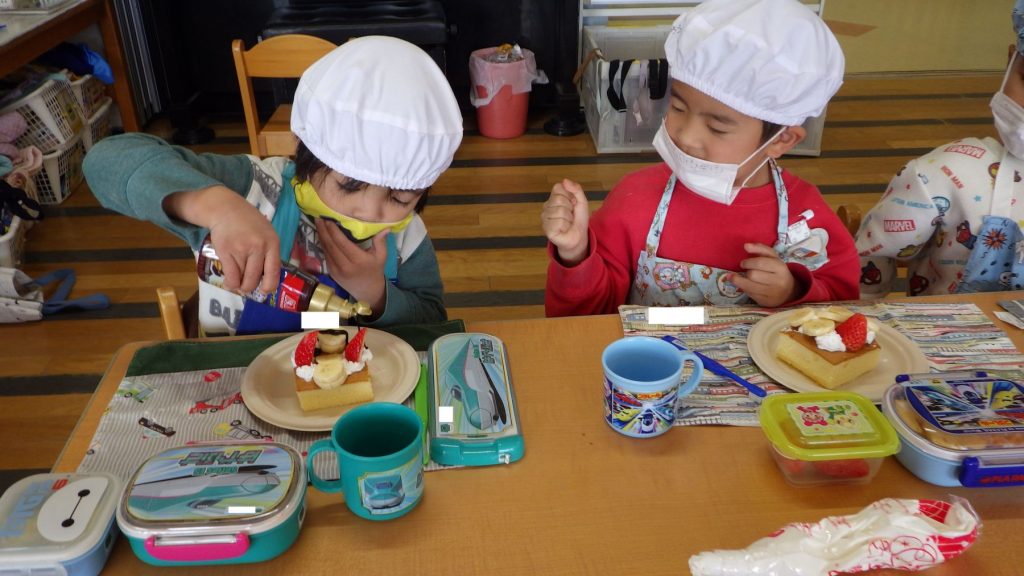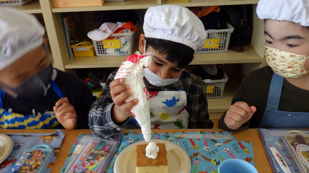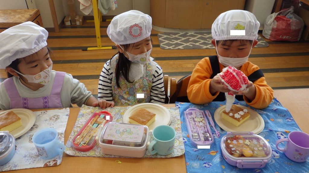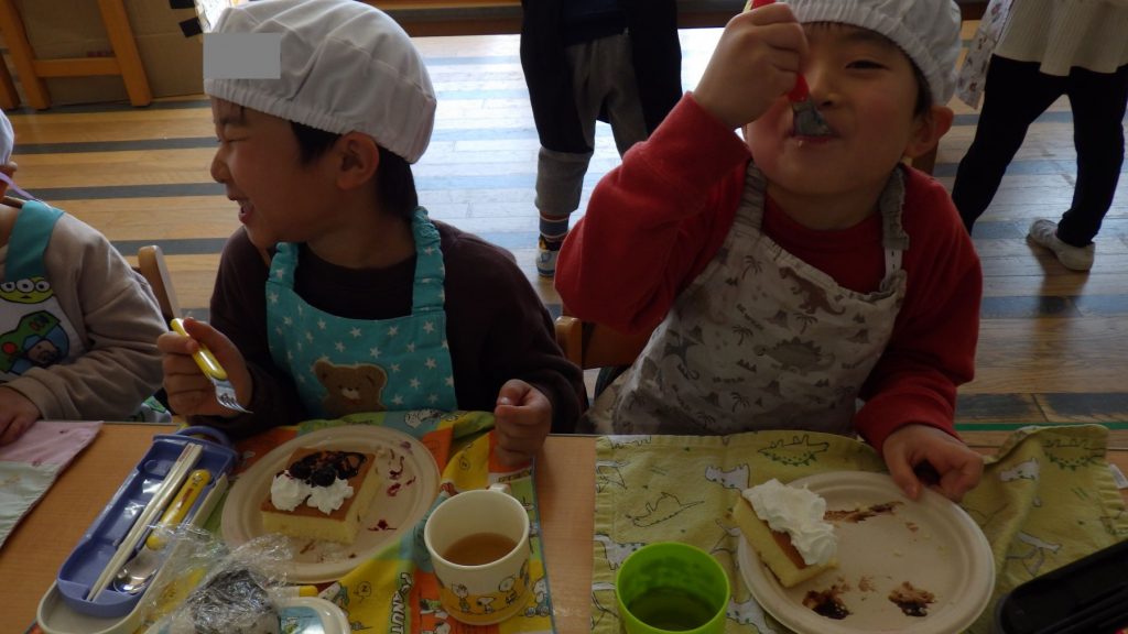 自分が作ったケーキを友達に紹介したり、友達のケーキを見ておいしそうだねと言葉を交わしながらひとときを楽しみました🎵