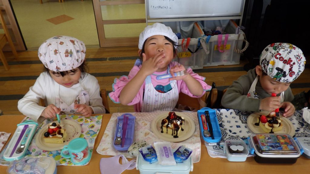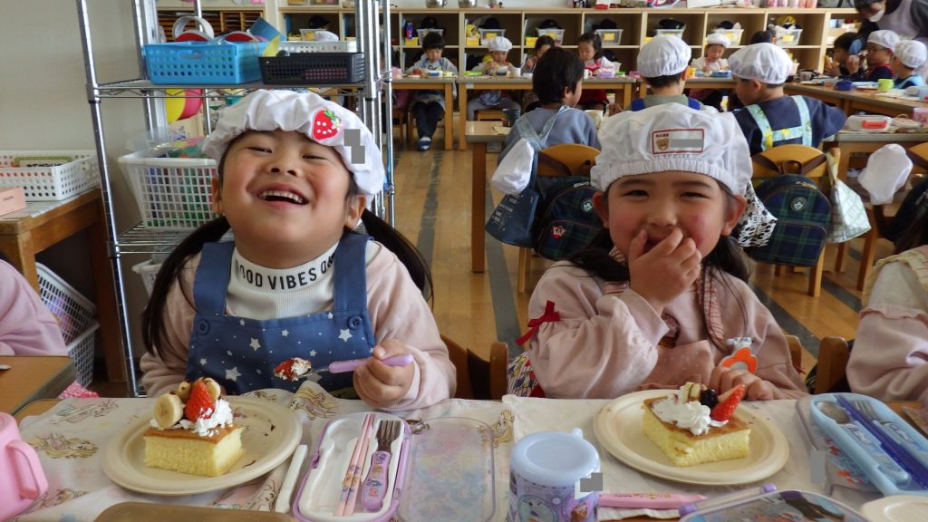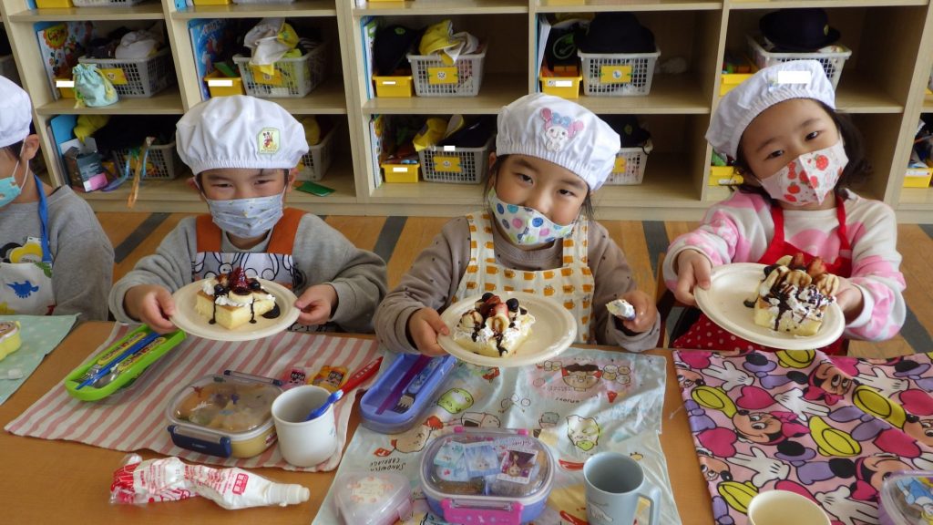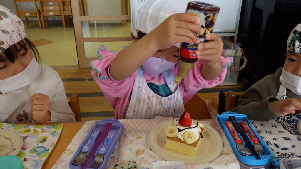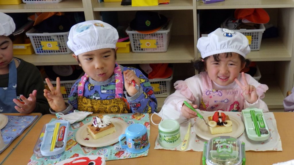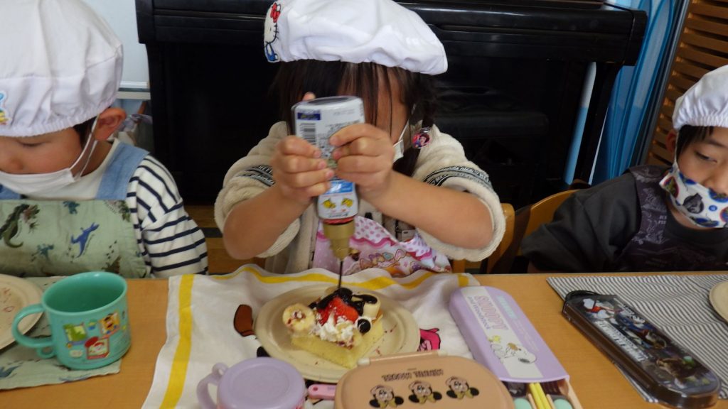 自分が作ったケーキを友達に紹介したり、友達のケーキを見ておいしそうだねと言葉を交わしながらひとときを楽しみました🎵