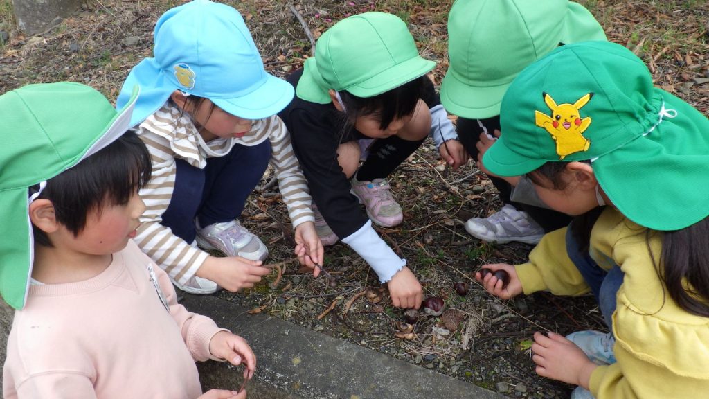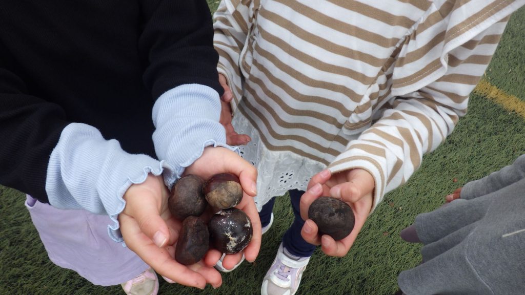 「栗があった!」「食べられるかな?」「でもちょっと違うかも、、、」