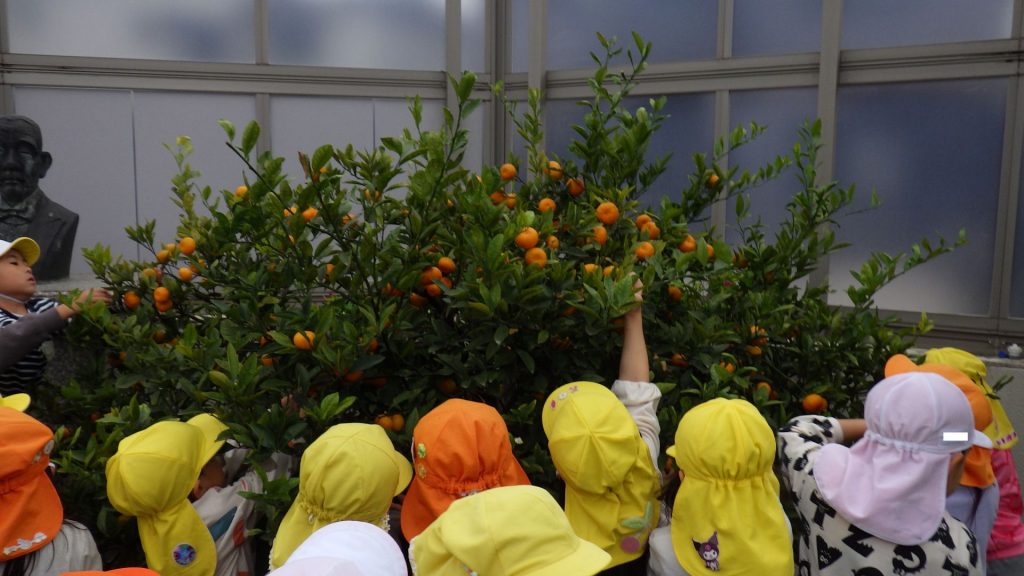 だんだん寒くなり冬も本番になってきたところで、園庭に実ったみかんを発見!! 園長先生に収穫してもいいかを自分たちで聞いてから、年中さんが園の代表となってみかんを収穫しました🍊 園のみかんは小ぶりでしたがたくさん実っていて、子どもたちも「たく... -